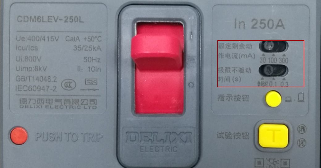 剩余动作电流:30-100-300mA三挡可调;