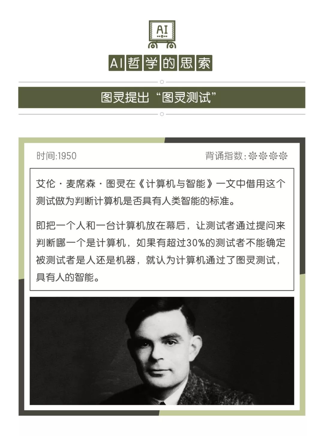 ??敲黑板:关于有意识的人类以及无意识的机器之间区别的讨论很早就兴起。 “人工智能之父”的代表理论,同时还是人工智能哲学方面第一个严肃的提案,掌握这个多拿5分。