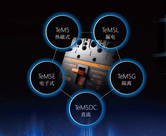 重磅发布的全新TeM5塑壳断路器,拥有齐全的热磁式,漏电,电子式,直流,隔离五大系列产品。此外,该系列还增加特殊功能用途产品:如过载报警不脱扣断路器、A型漏电断路器等。