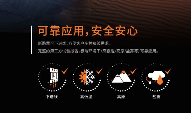 TeM5塑壳断路器拥有丰富的第三方报告,如高低温、下进线、高原、盐雾报告等,轻松hold住各类极限使用环境,更好的满足了用户对使用环境的严苛需求。